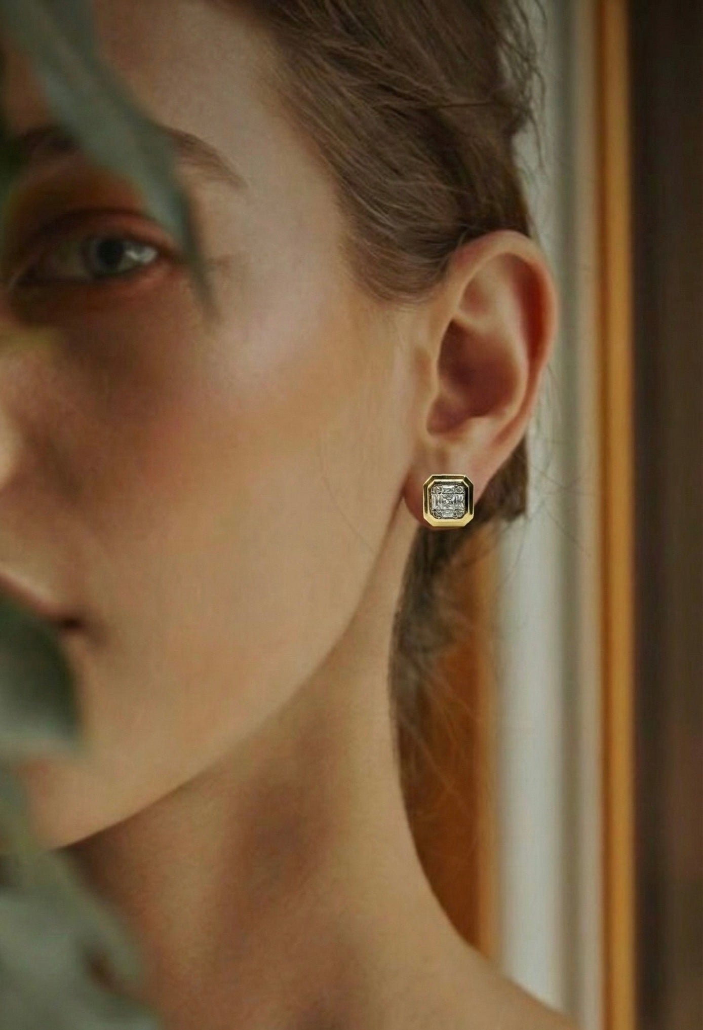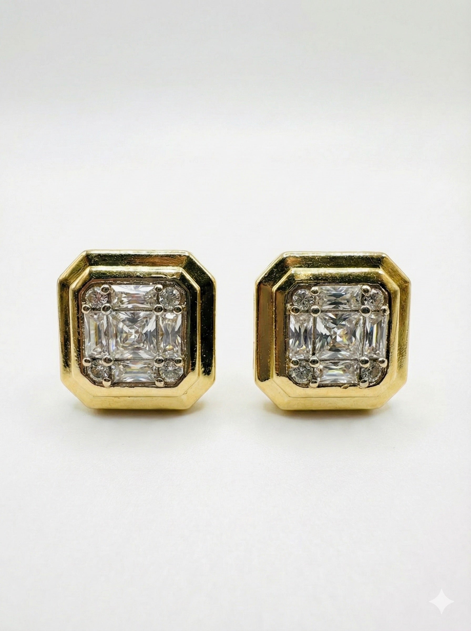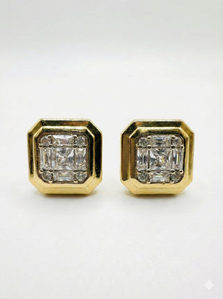 Klasik zarafeti modern bir tasarımla buluşturan bu göz alıcı küpeler, stilinizin tamamlayıcısı olacak. Altın tonlu sekizgen çerçeve içerisine yerleştirilmiş, merkezdeki iddialı kesim parlak taşı çevreleyen zarif detaylar, yoğun bir ışıltı sunar. Hem günlük kullanımda hem de özel davetlerde şıklığınızı vurgulamak için mükemmel bir tercihtir.