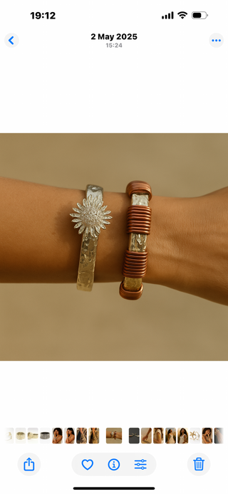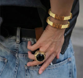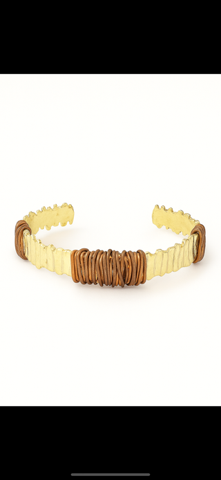 El işçiliği ile üretilen bu gold renk bronz detayl bileklik, antik dokusu ve ince hatlarıyla modern sadeliği birleştirir.