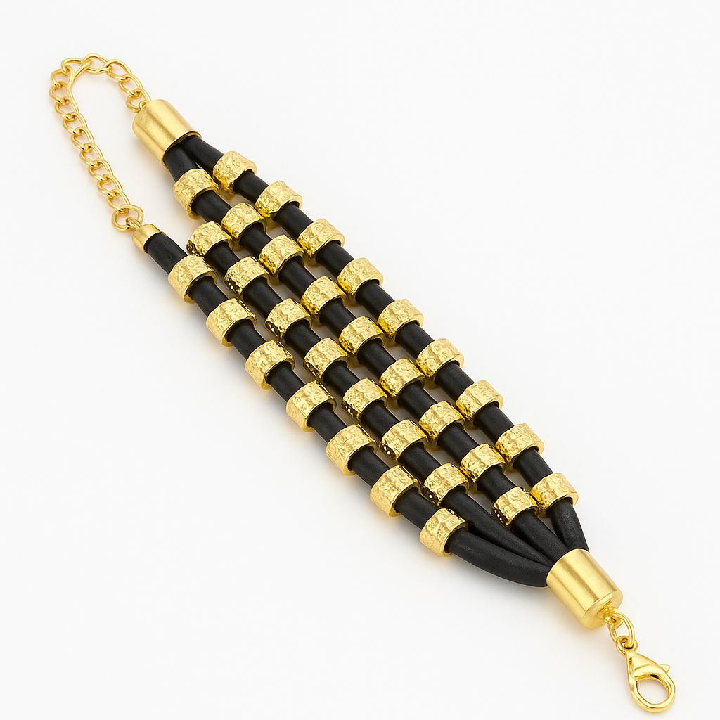Siyah derinin asil bir dokusu, altın detaylarla birleşerek zamansız bir şıklık yaratır. Hem günlük stilin tamamlayıcısı hem de özel davetlerde dikkat çekici bir aksesuardır.