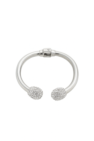 Beyaz zirkon taşların zarafetiyle tasarlanan bu gümüş tonlu bileklik, her stile modern bir parıltı katar.