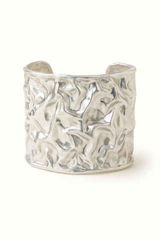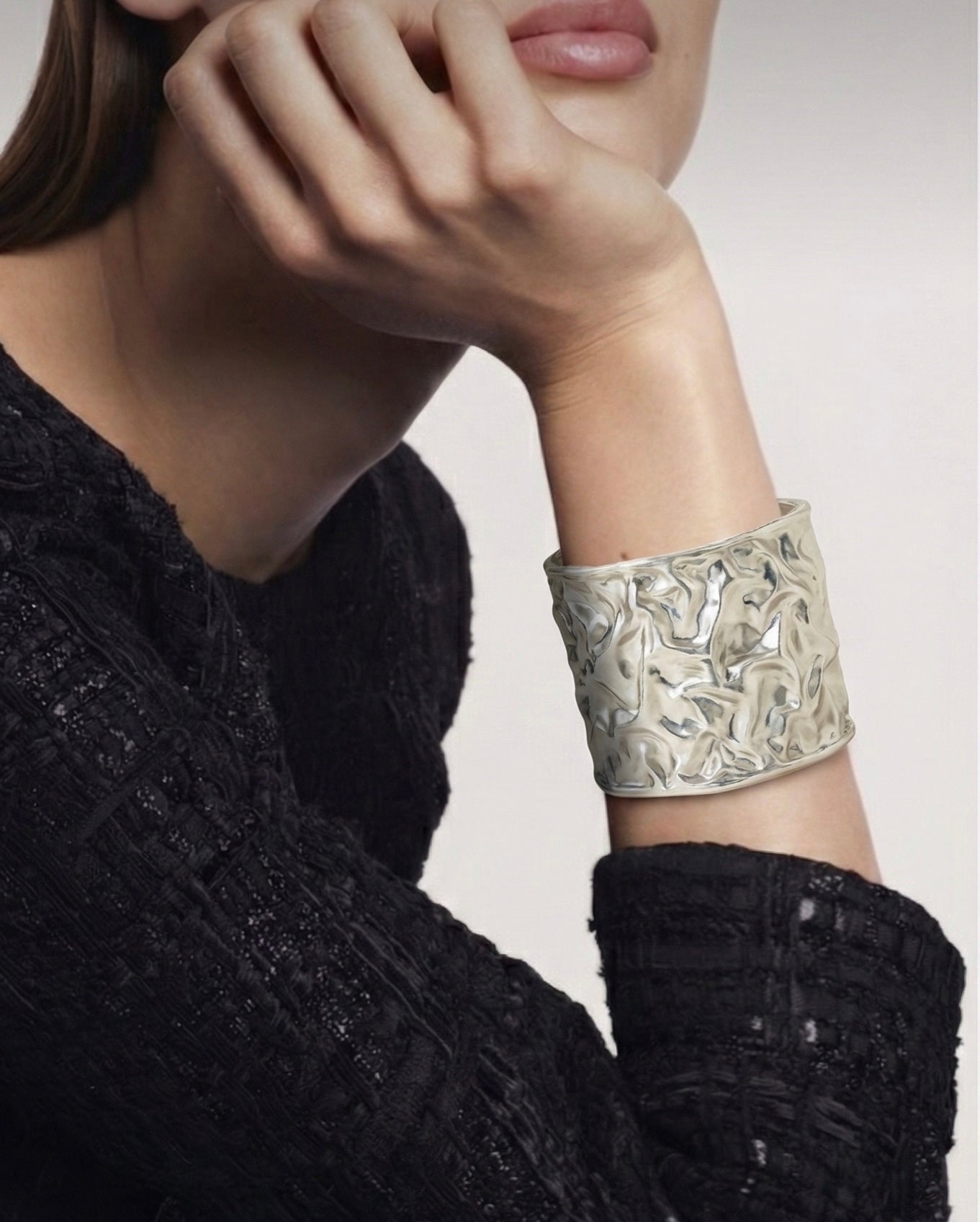 El işçiliğiyle oluşturulan organik dokusu sayesinde bu bronz üzeri altın kaplama kalın bileklik, ışığı her açıdan farklı yansıtır.