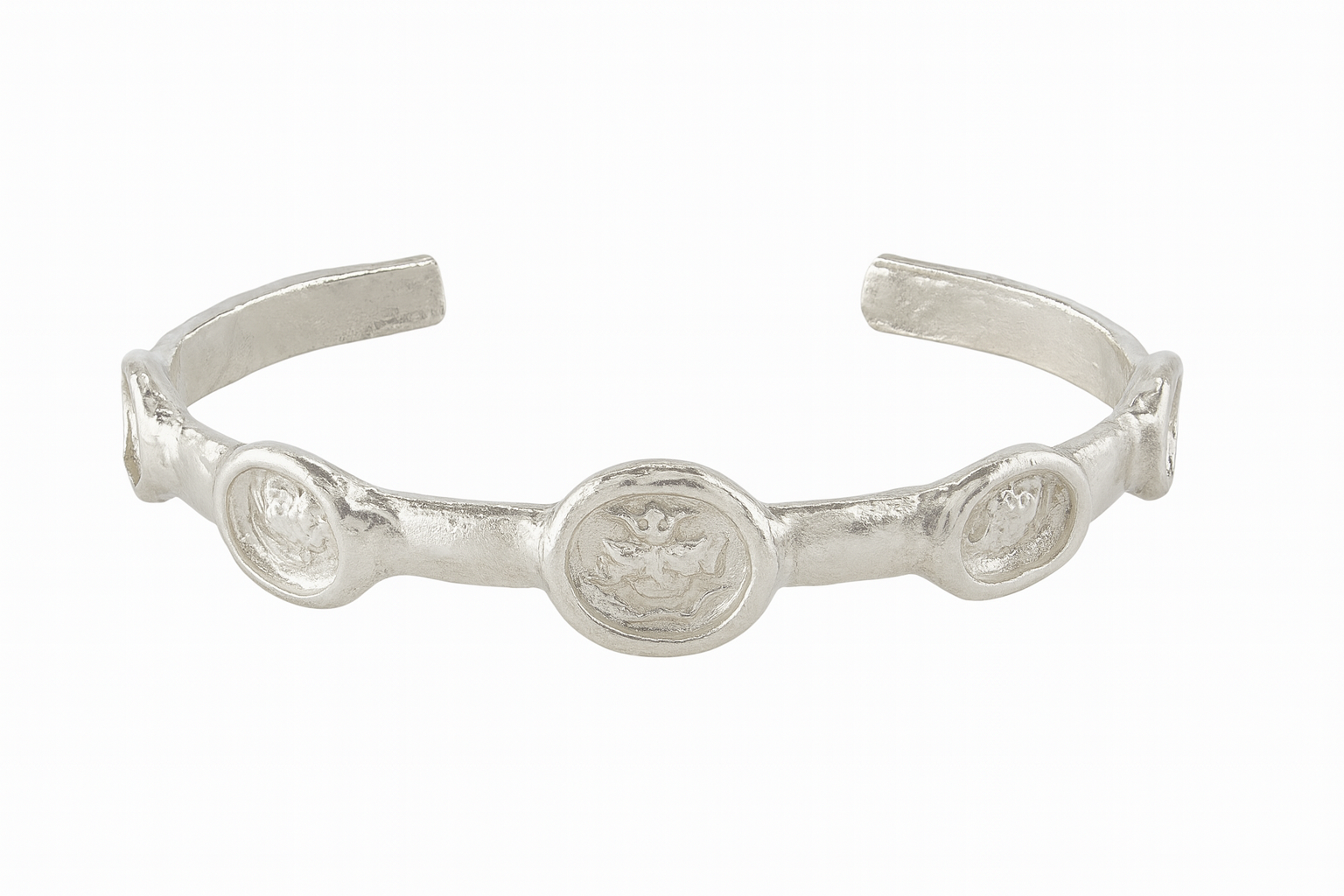 El işçiliği ile üretilen bu silver renk bileklik, antik dokusu ve ince hatlarıyla modern sadeliği birleştirir.