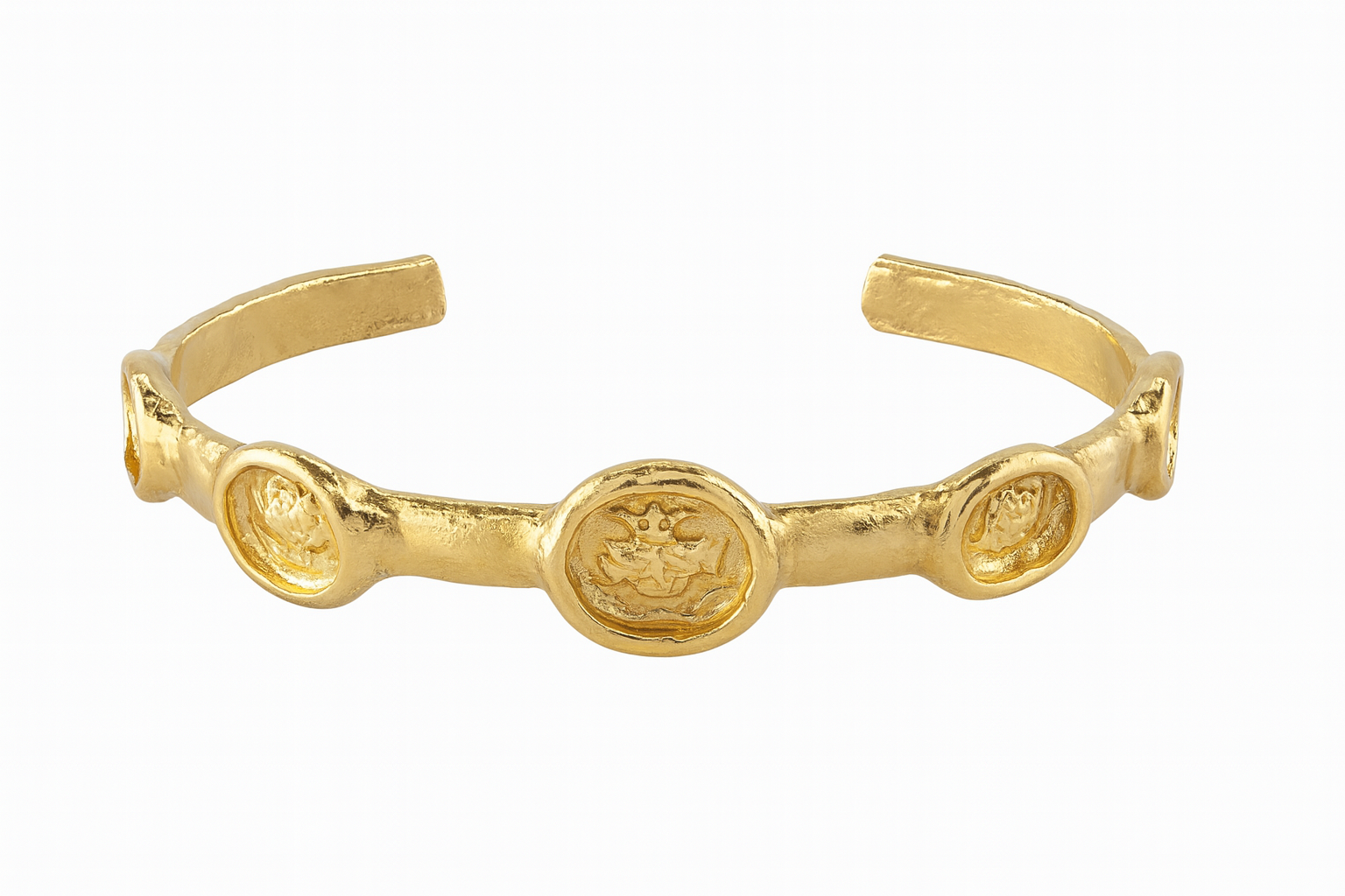 El işçiliği ile üretilen bu gold renk bileklik, antik dokusu ve ince hatlarıyla modern sadeliği birleştirir.