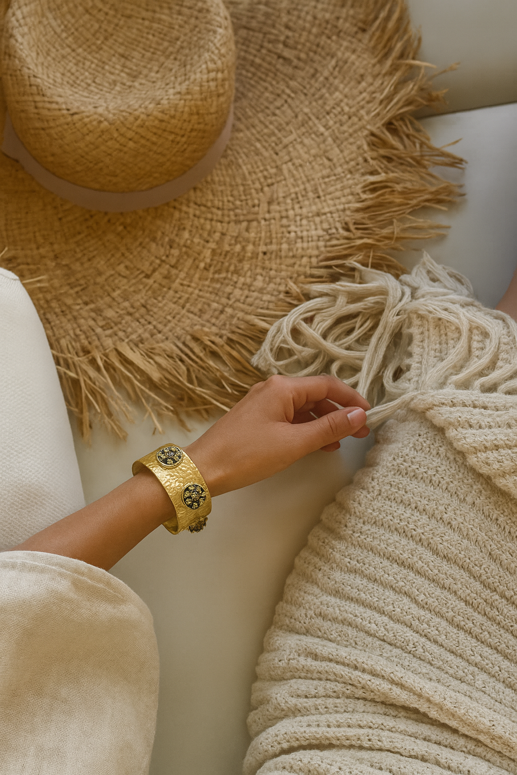 Bronz üzeri altın kaplama yapısıyla modern ve zarif bir görünüm sunar.