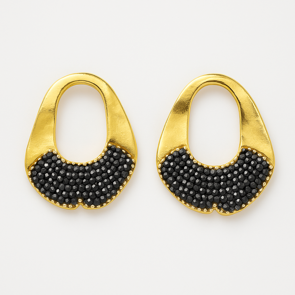 Heykelsi formu ve pürüzsüz hatlarıyla zarafeti modern bir dokunuşla buluşturuyor. Altın tonlarının sıcaklığı, siyah zirkon taş detayıyla gece ve gündüze uyum sağlar.