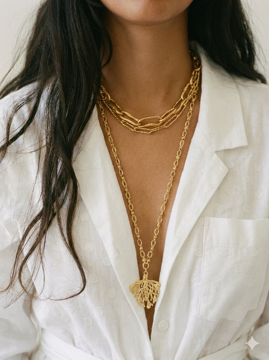 Standart zincirlerin aksine, kendinden dokulu, etli ve dolgun yapısıyla tasarlanan uzun zincir, kolyeye tok ve lüks bir görünüm kazandırıyor. Hem uzunluğu hem de ışıltılı dokusuyla, boynunuza taktığınız anda kombininizin havasını değiştiriyor.