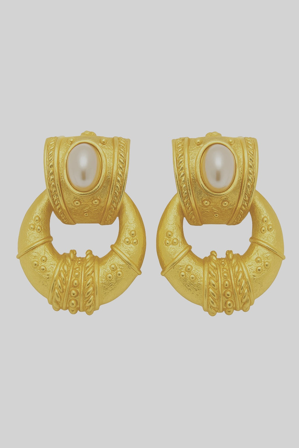 Zamansız zarafetin yansıması. İnci detayları ve işlemeli altın formuyla bu küpe, klasik stilin modern yorumu.✨