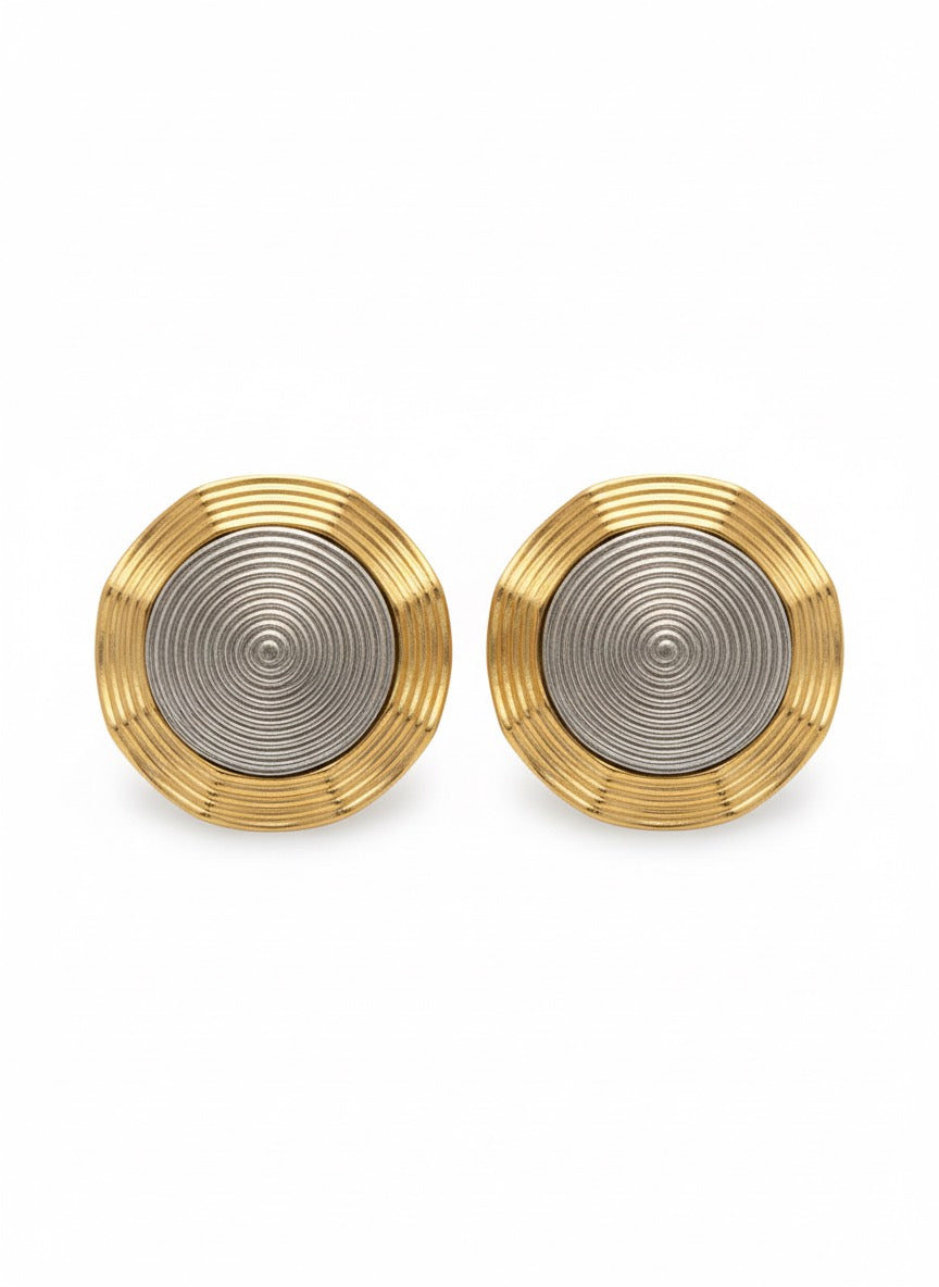 Mat dokulu gümüş tonlu merkez ve altın tonlu çerçevenin birleşimi, modern ve doğal bir şıklık sunuyor. Günlük kullanımda minimal görünüm isteyenler için ideal, aynı zamanda özel günlerde sade ama iddialı bir tamamlayıcı.