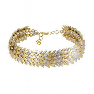 Bronz üzeri altın kaplama, zarif ve güçlü bir duruşu bir araya getiriyor. Doğanın yaprak dokusundan ilham alan bu tasarım, ışığı her açıdan yakalayan bir parıltıya sahip.