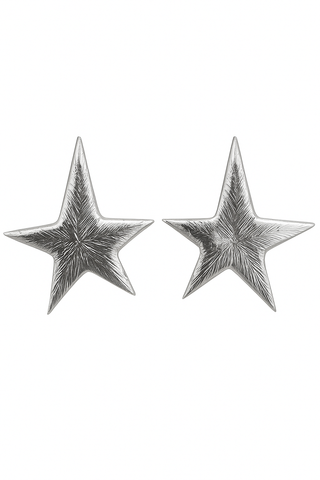 Cesur ve dikkat çekici bu büyük yıldız formundaki silver renk küpe, dokulu yüzeyiyle her stile uyum sağlar.