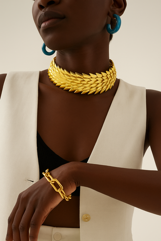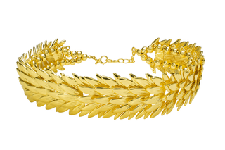 Bronz üzeri altın kaplama, zarif ve güçlü bir duruşu bir araya getiriyor. Doğanın yaprak dokusundan ilham alan bu tasarım, ışığı her açıdan yakalayan bir parıltıya sahip.