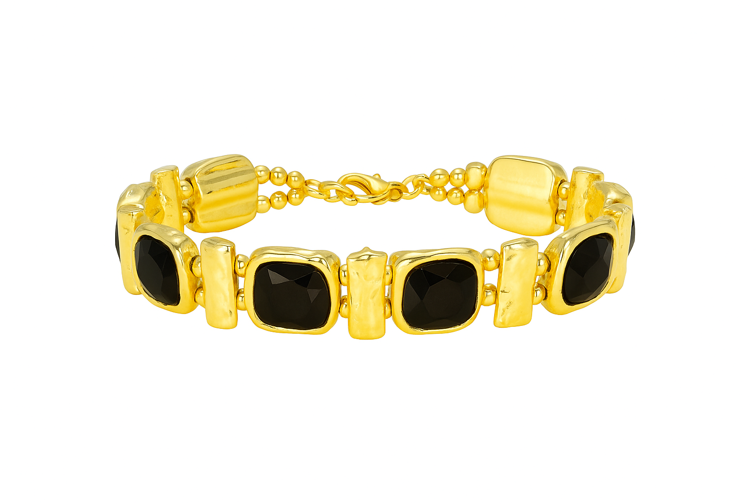 Bronz üzeri altın kaplama bu zarif choker, doğal taşların gücüyle klasik ve moderni bir araya getiriyor.