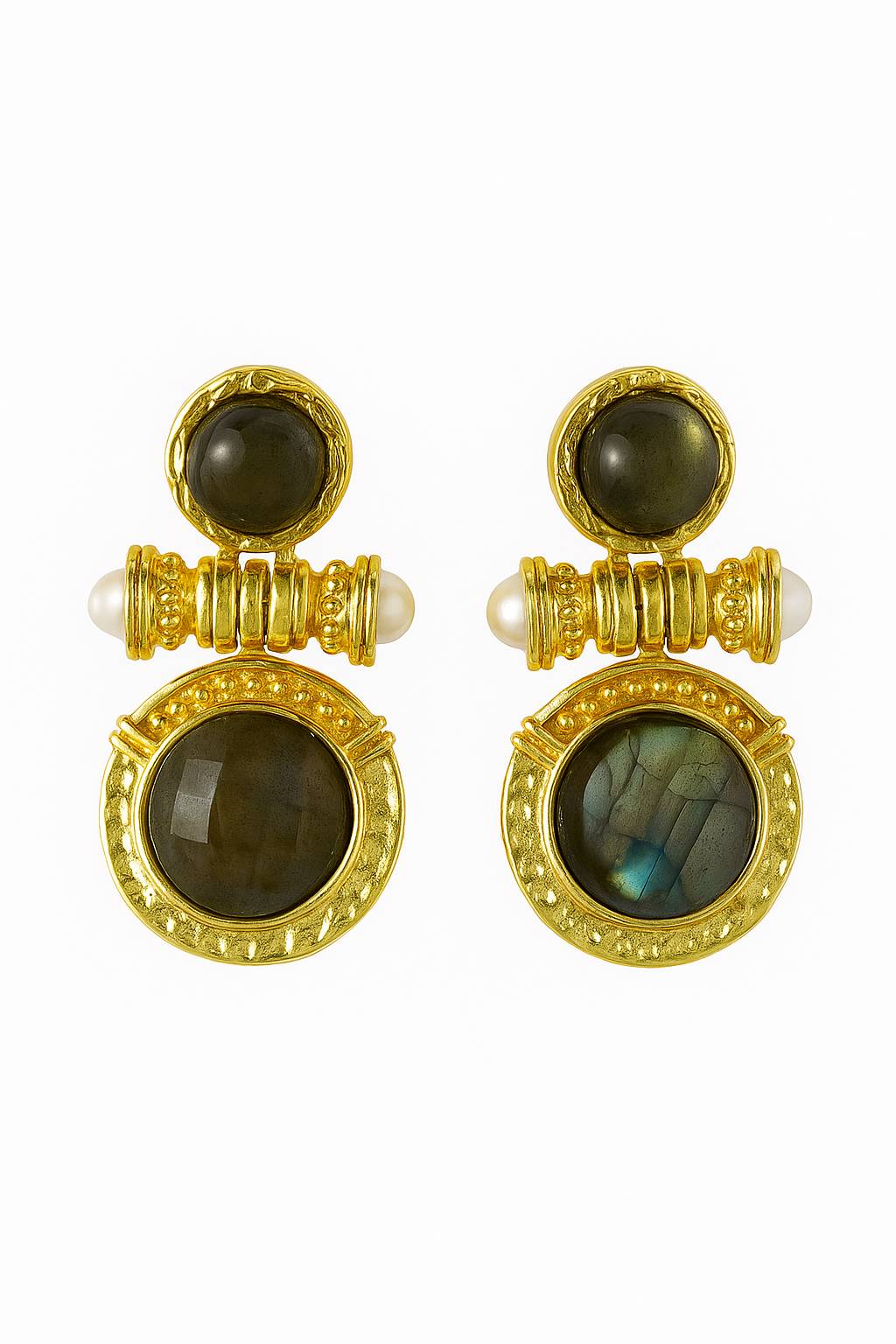 Altın kaplama detaylar, gri taşın doğal yansımasıyla birleşerek güçlü ama zarif bir görünüm sunar.