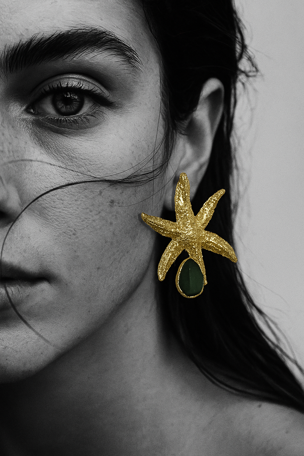 Denizin büyüsünü gece ışıltısıyla buluşturan özel bir parça. Altın kaplama dokusu ve siyah kristal taşıyla zamansız bir kontrast yaratır.