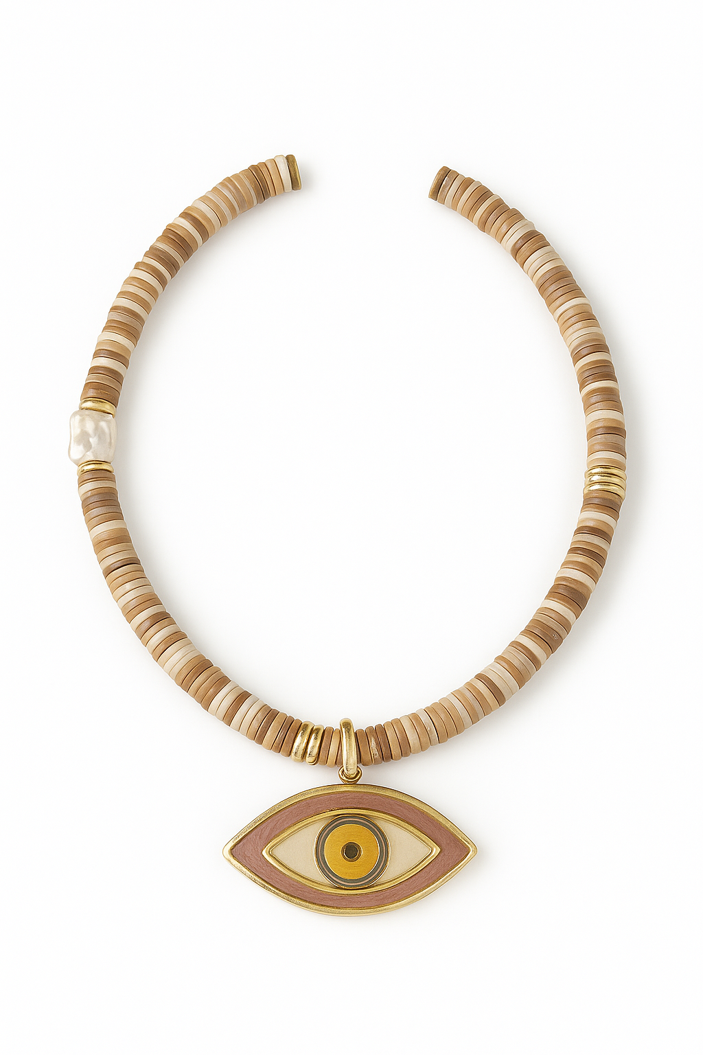 El yapımı seramik göz ucu ve renkli boncuklarıyla enerjik, bohem bir ruh taşıyor.