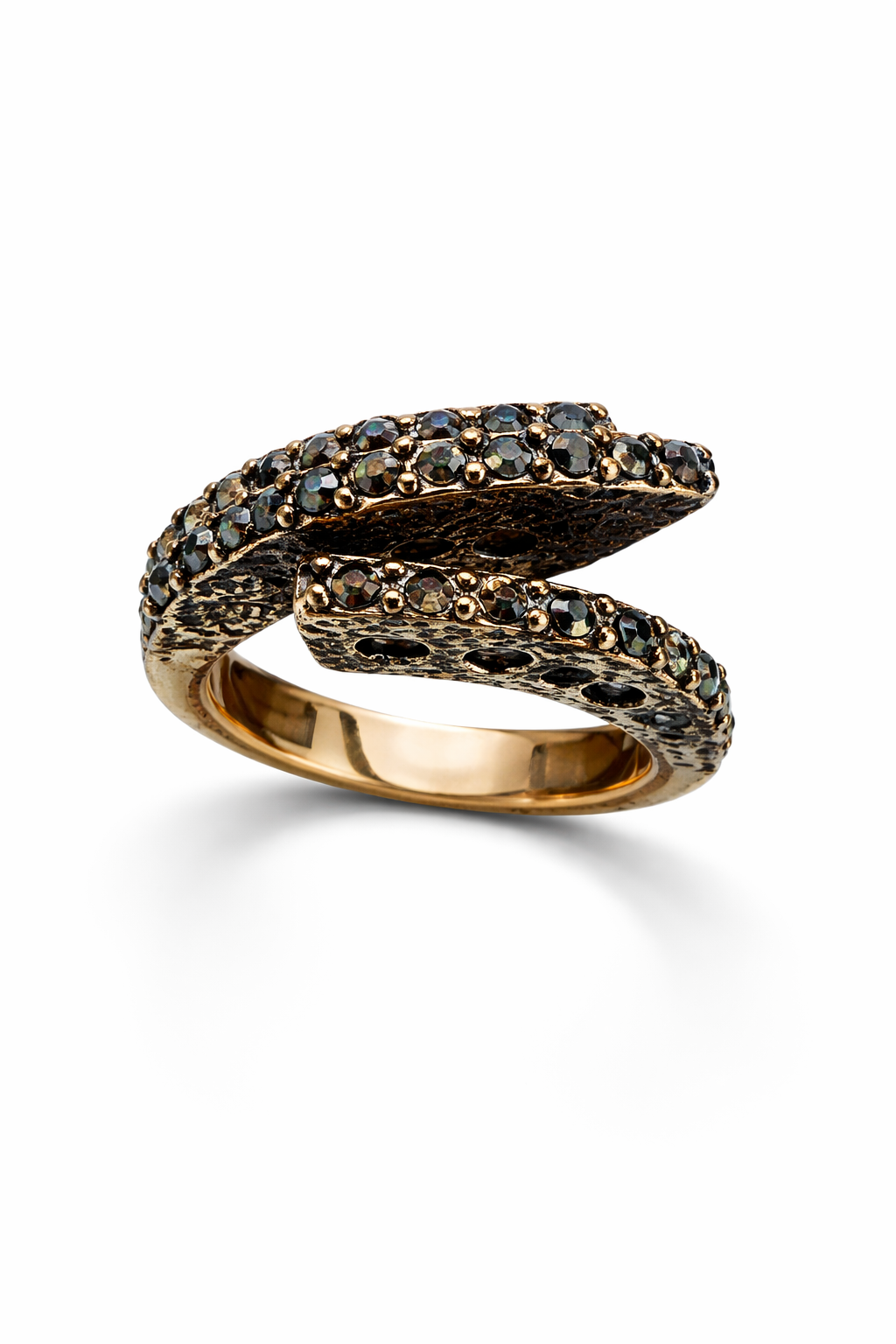 Midnight Lines Adjustable Ring, altın tonunun sıcaklığıyla siyah taşların gizemini bir araya getirir. Aralıklı formu sayesinde parmağı zarifçe sarar, günlük stilinize de gece şıklığınıza da güçlü ama minimal bir dokunuş katar. Tek başına dikkat çeken bir parça olduğu gibi, diğer yüzüklerle birlikte kullanıldığında modern bir stack görünümü verir.