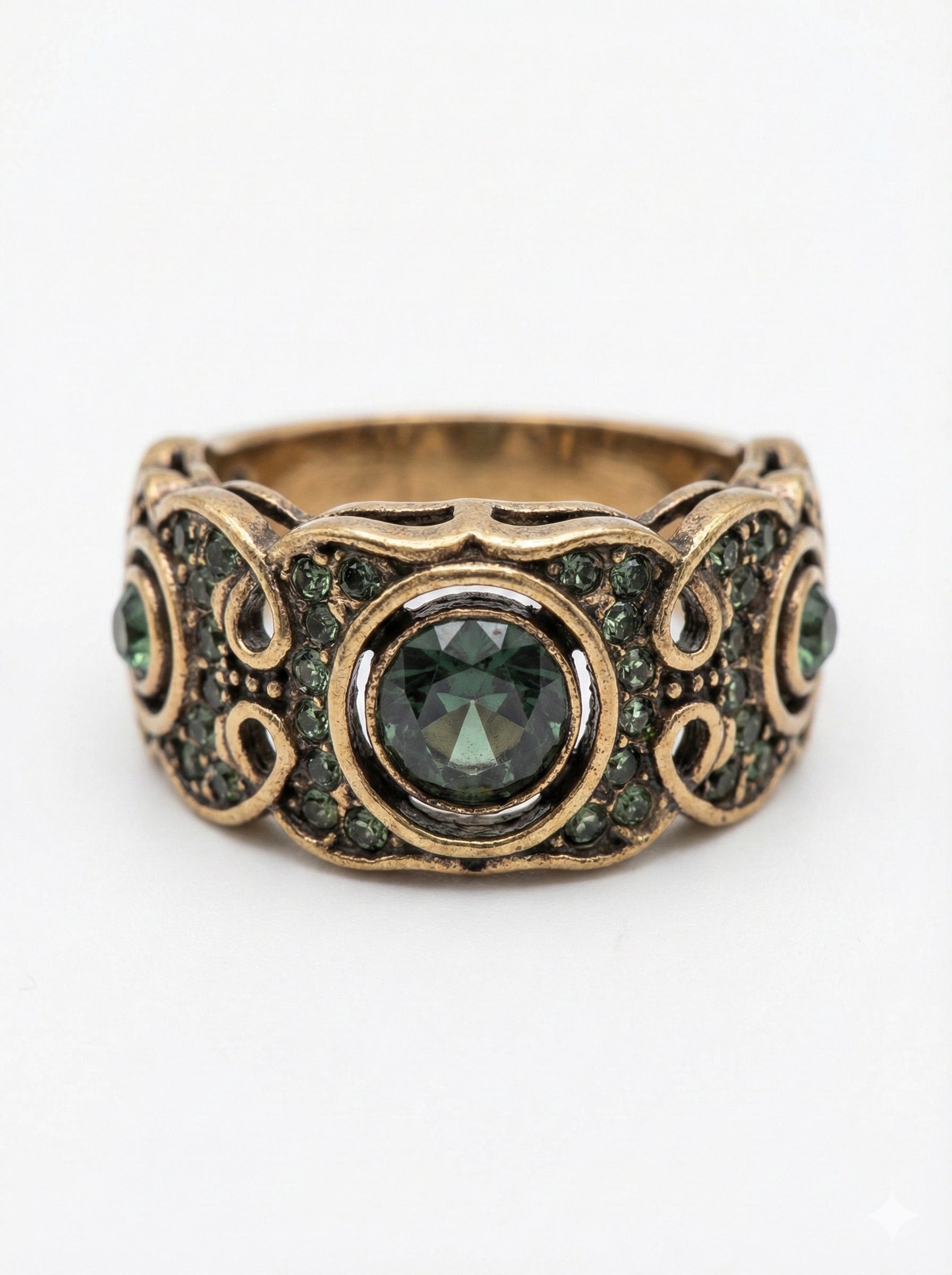• Tasarım Stili: Vintage, Barok esintili, Gösterişli (Statement) yüzük.