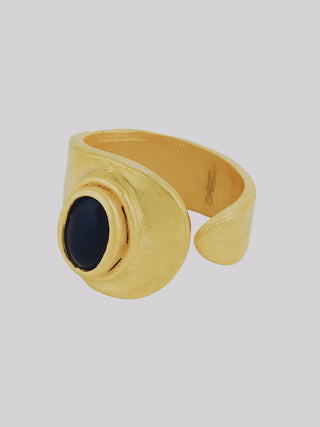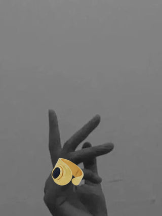 Siyah renk zümrüt taş detaylı. Bronz üzeri altın kaplama. Su ve kimyasallar kararmaya neden olabileceği için bunlardan uzak tutunuz.